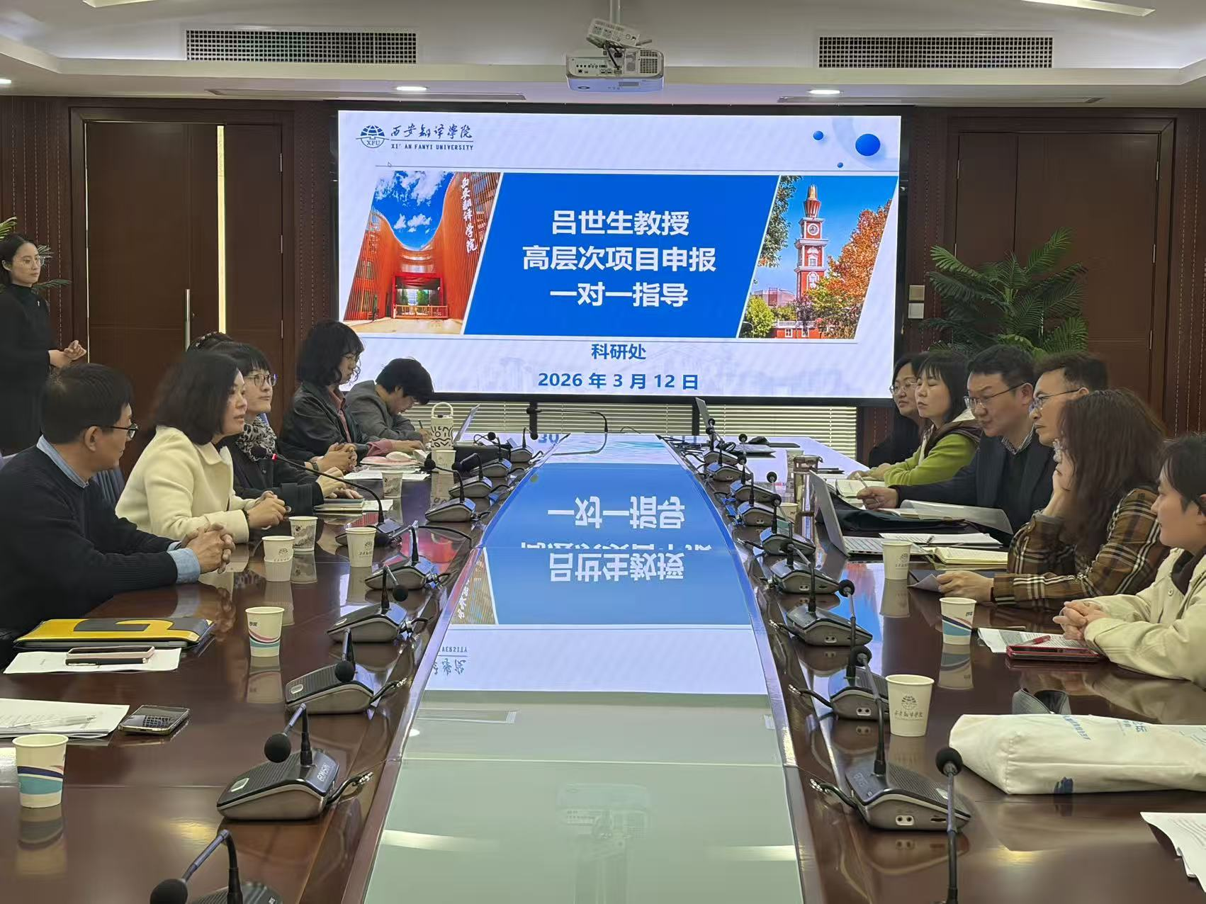 为进一步提升我校教师高层次项目申报质量,理清申报思路,破解申报难题,助力教师在国社科、教育部等科研项目申报中实现突破,3月12日至13日,我校特邀北京语言大学教授、博士生导师吕世生教授,开展高层次项目申报一对一指导会,英文学院、国际语言文化学院及人文与艺术学部申报高层次项目的科研骨干积极参会、踊跃交流,会议由王利晓副校长主持。
