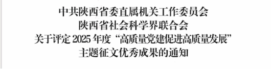近日,中共陕西省委直属机关工作委员会与陕西省社会科学界联合会联合发布《关于评定2025年度“高质量党建赋能高质量发展”主题征文优秀成果的通知》,我校马知辰、豆素勤、刘联军3位教师斩获殊荣。本次征文全省共投稿264篇,经专家盲评盲审,最终评定优秀成果30篇(一等奖5篇、二等奖11篇、三等奖14篇)。