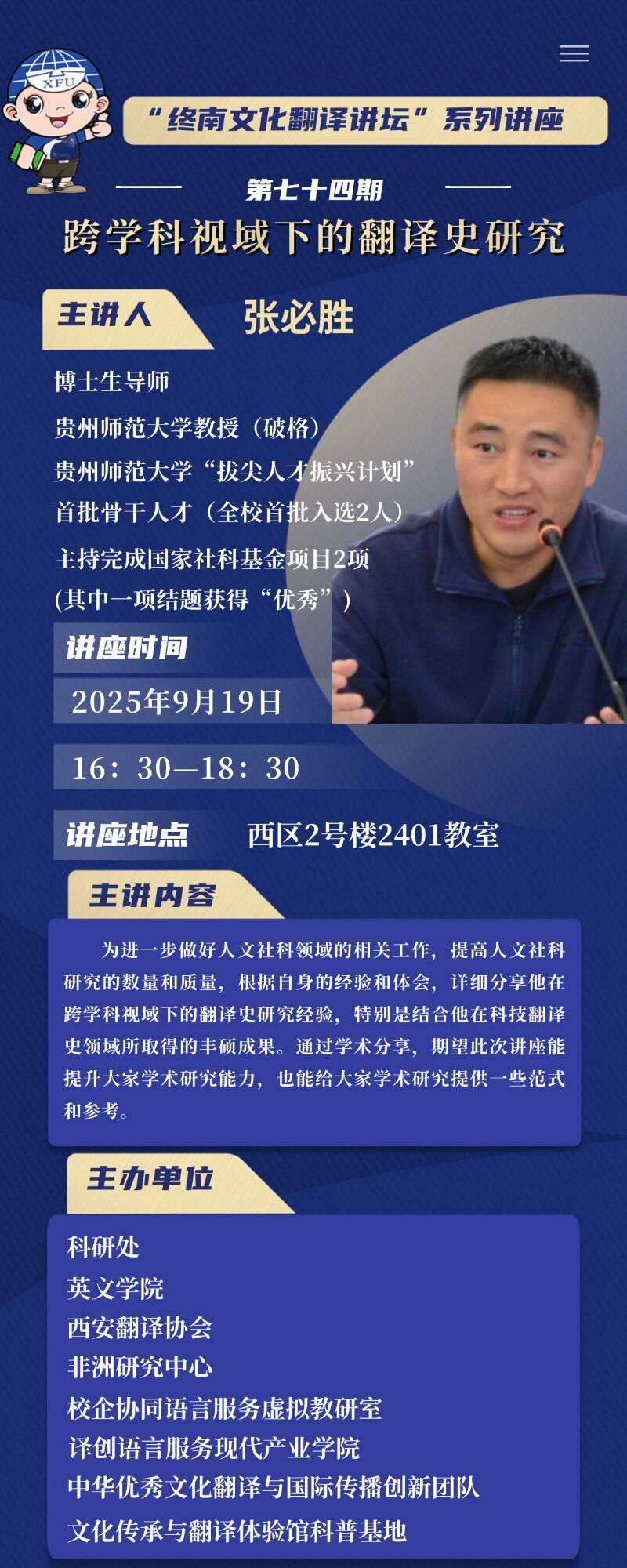 讲座主题:“终南文化翻译讲坛”系列讲座第七十四期——跨学科视域下的翻译史研究
