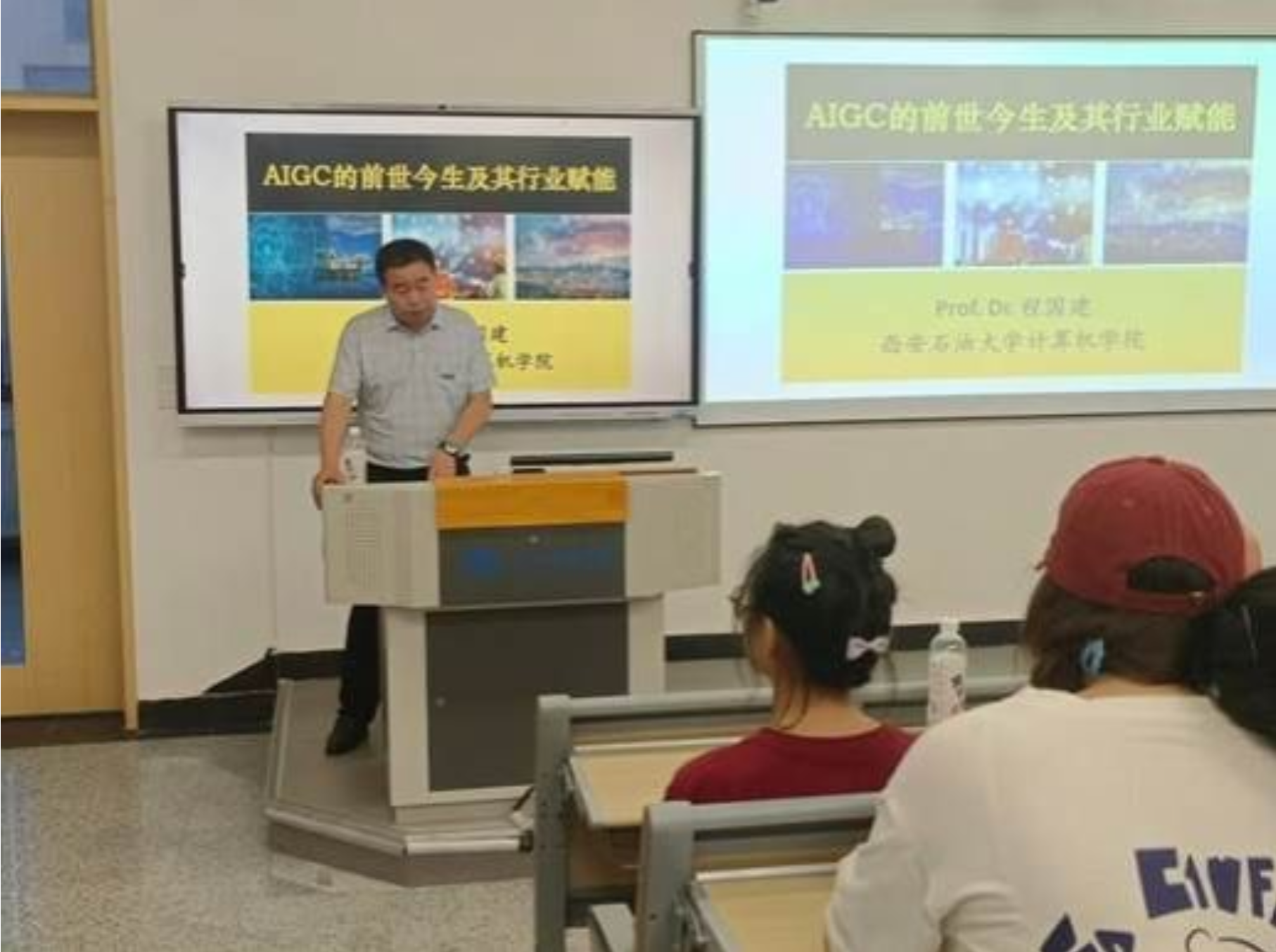 其次,讲座的核心环节,特邀嘉宾——西安石油大学计算机学院教授及中国石油大学(北京)兼职教授程国建博士,以其深厚的学术造诣和丰富的实践经验,引领大家深入AIGC的广袤世界。程教授从AIGC的起源讲起,追溯至自然语言处理与机器学习的萌芽时期,逐步揭示随着深度学习技术的飞跃,AIGC如何实现了质的飞跃,能够高效生成高质量、多样化的文本、图像、音频及视频内容。