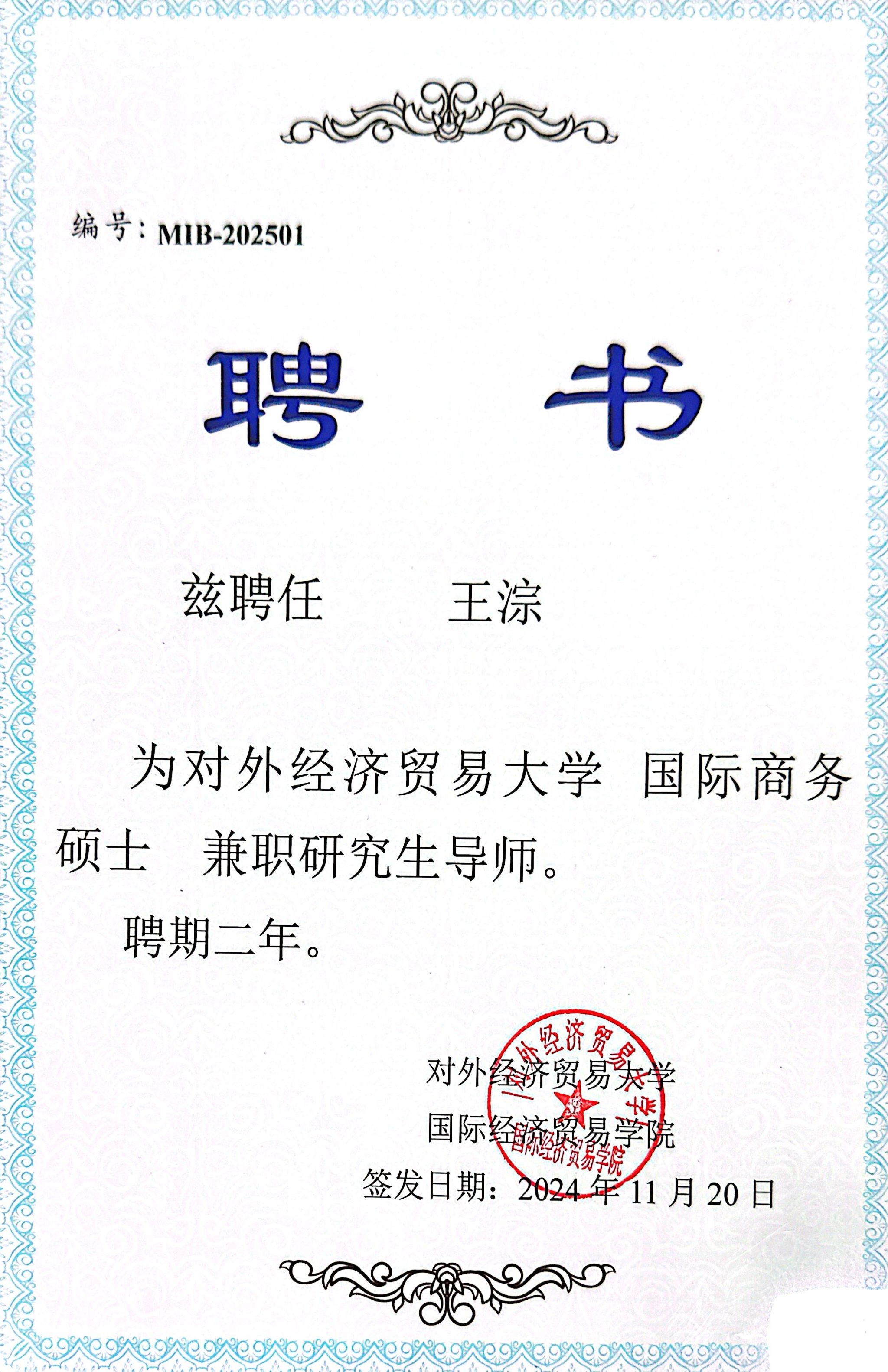 王淙教授的受聘,将进一步加强研究院与对外经济贸易大学的联系与合作,为研究院引进更多优质的教育资源和科研支持。同时,她丰富的教学经验和科研能力,也将为国际商务硕士研究生的培养提供有力的指导,帮助他们在学术和实践上取得更大的进步。